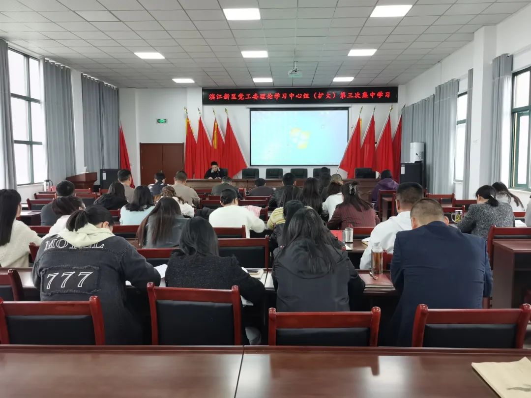 ❖4月11日,滨江新区召开党工委理论学习中心组(扩大)第三次集中学习,并组织2名机关干部、1名社区支部书记结合自身业务进行辅导授课。