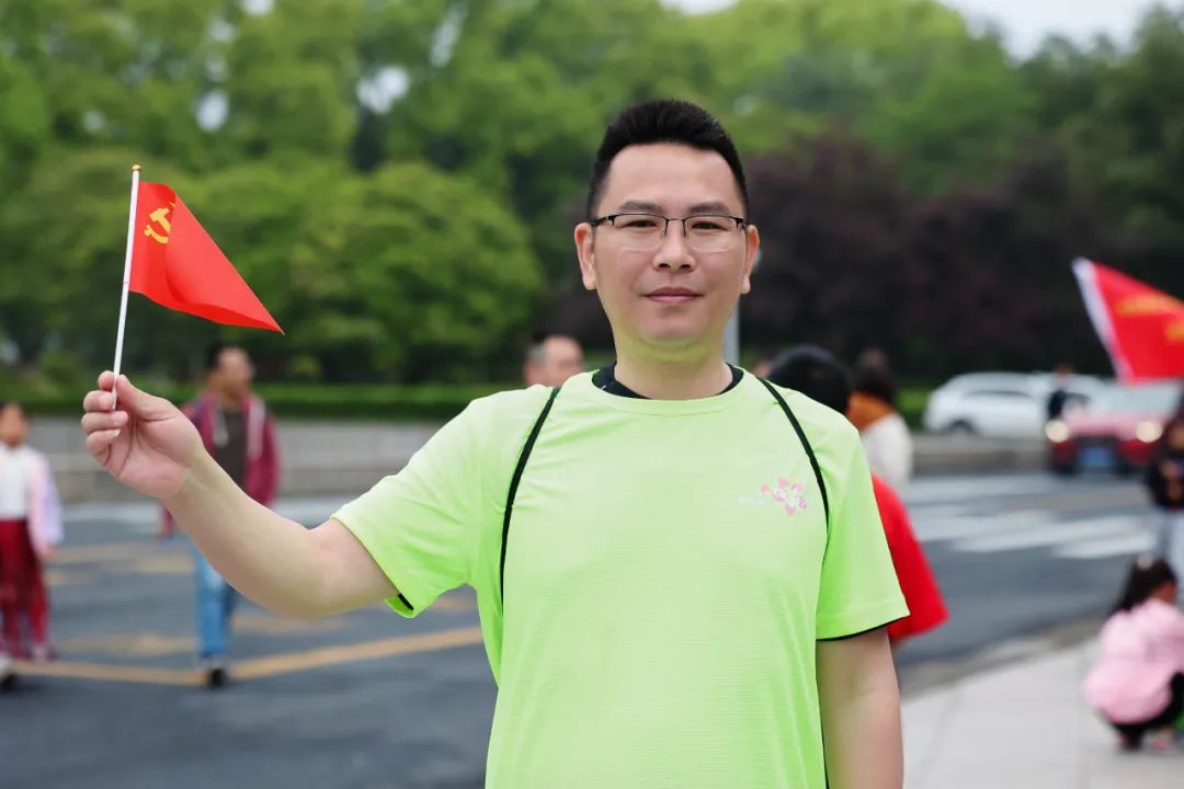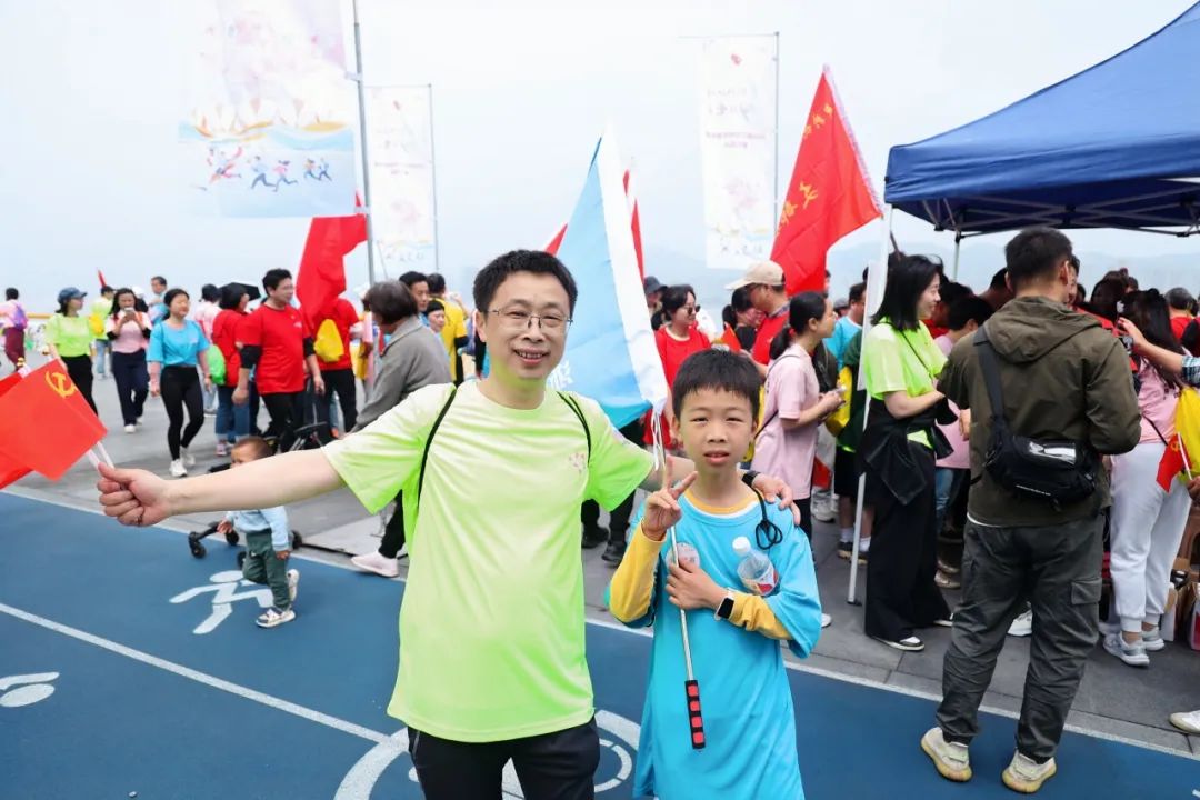 大家满怀热情,早早便齐聚在集合点,换上了统一的彩色毅行T恤,背上物资包整装待发。党旗与杭州湖南商会、浙江省湖南商会数字化专业委员会的旗帜随风飘扬,激励着大家勇往直前。