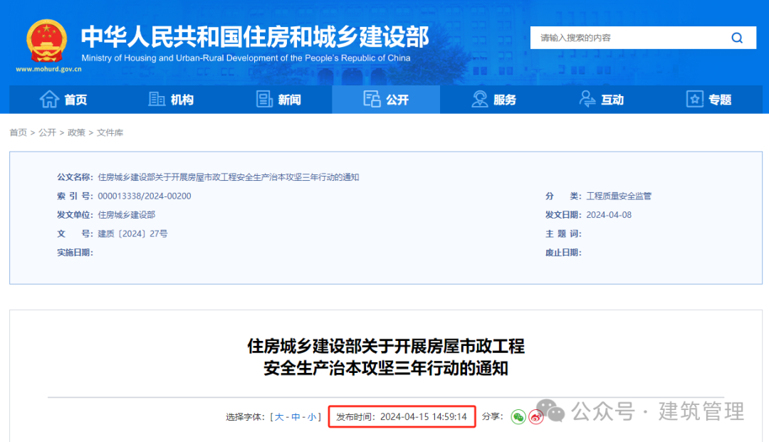 住建部关于施工安全方面