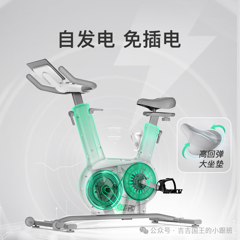 该产品具有自发电功能,无需外部电源,通过骑行产生的能量来供电,节省能源。它采用了磁控阻力系统,用户可以根据自己的需要通过旋钮来调节阻力,实现不同强度的锻炼。