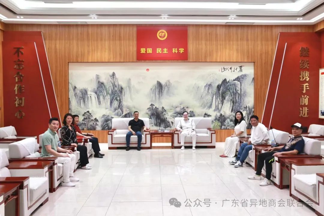 2024年4月10日下午,广州市工商联联络部姜良波主任,广州总裁商会会长姜宏、常务副会长兼秘书长张辉全,中山大学教授孙伟等一行莅临广东省异地商会联合会进行参观交流,我会会长孙永利、办公室主任孙嘉豪等进行了热情的接待与陪同。