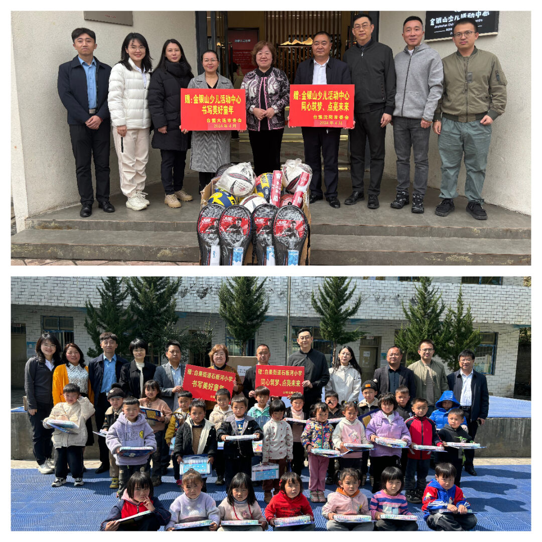 台盟沈阳市委会、台盟大连市委会共同向少儿活动中心和石板河小学捐赠了体育、学习用品。