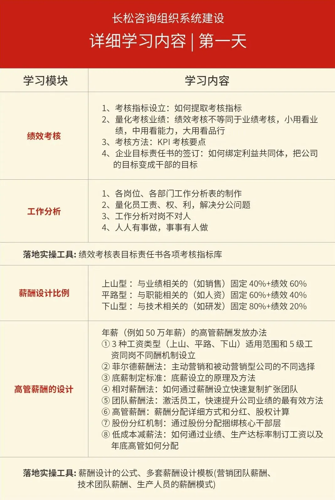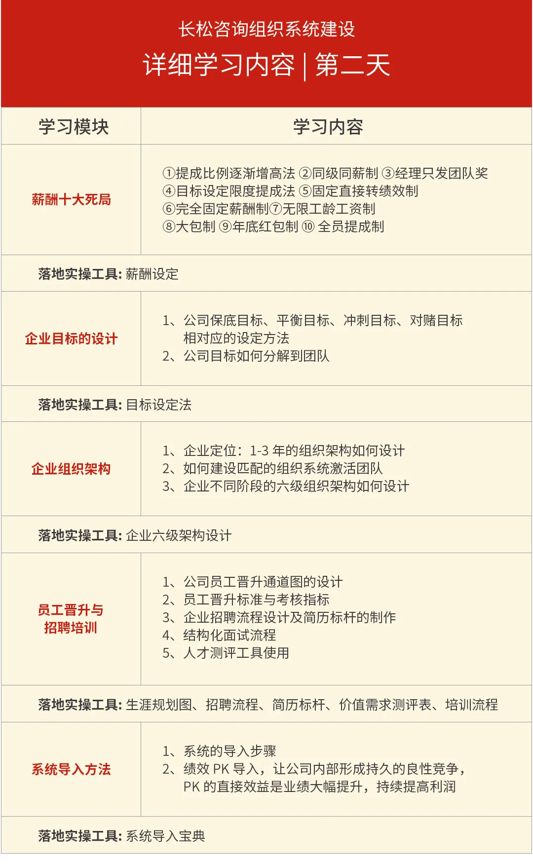 面对上述问题,作为一个企业家无时无刻不在寻找解决办法,可是效果不理想,用人、薪酬、绩效很难,市面上有太 多管理咨询公司,到底该选择哪一家?长松咨询的组织系统在竞争如此激烈的今天,仍然独占鳌头,到底有什么过人之处?欢迎来公司了解或者去咨询会现场体验!