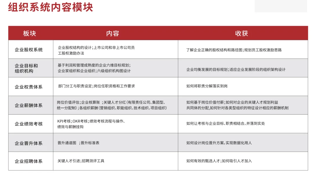 它与研发系统、营销系统、流程系统一样重要,只有组织系统建设好了,其他的管理系统才能充分发挥作用,才能激活企业内在的运营规律,让企业不再依赖主观主观经营思维而是系统化、团队化、流程化运作,从而达到利润倍增、成熟稳定发展。