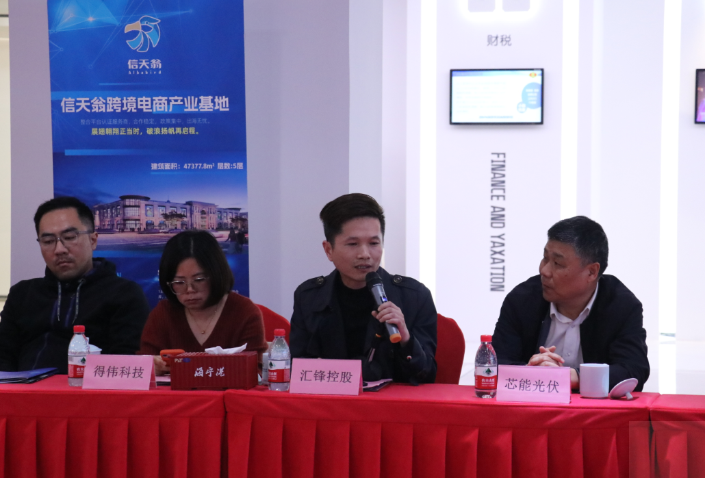 企业家积极进行交流。浙江海象新材料股份有限公司王周林从港口费用、运输时间和空箱问题进行提问,张黎明现场做了详细的回答。