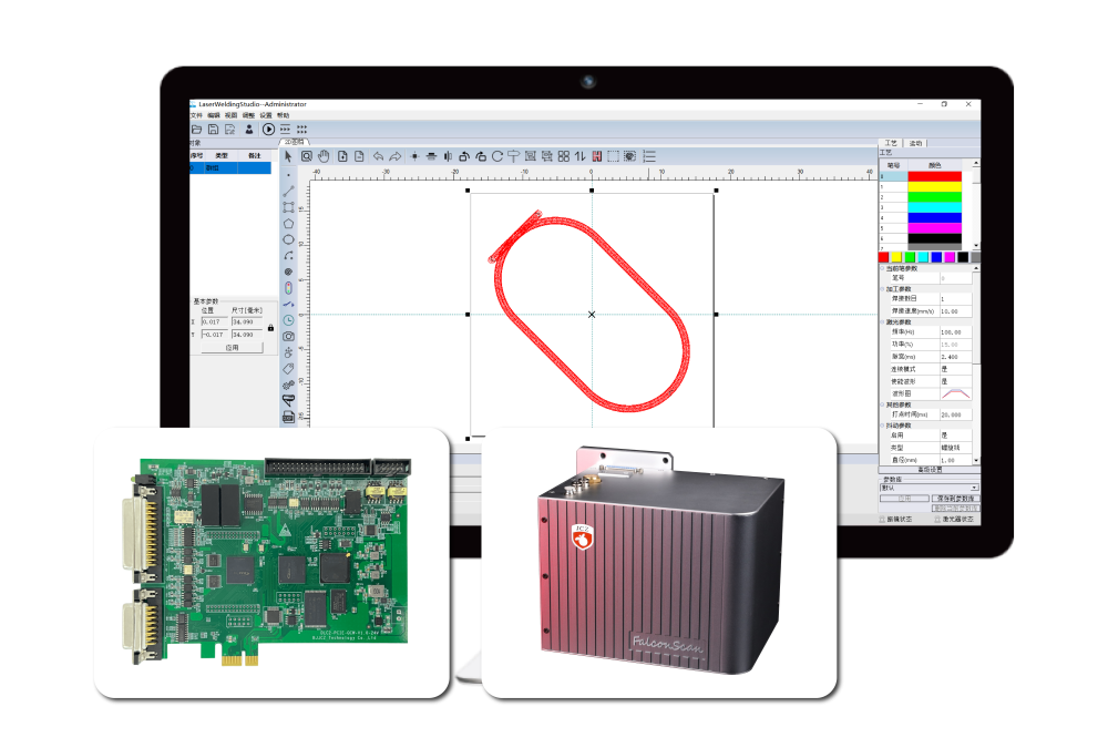 振镜焊接系统是金橙子自主研发的专用于激光焊接领域的控制系统。该系统基于成熟的振镜和激光控制平台,支持市场上多数大功率激光器;可实现基于CCD的机器视觉的辅助定位;可扩展运动控制卡进行多轴控制,实现各种形式的自动焊接设备集成;可定制开发与第三方的机器视觉系统、运动控制系统、PLC系统、管理数据库的各类数据接口。