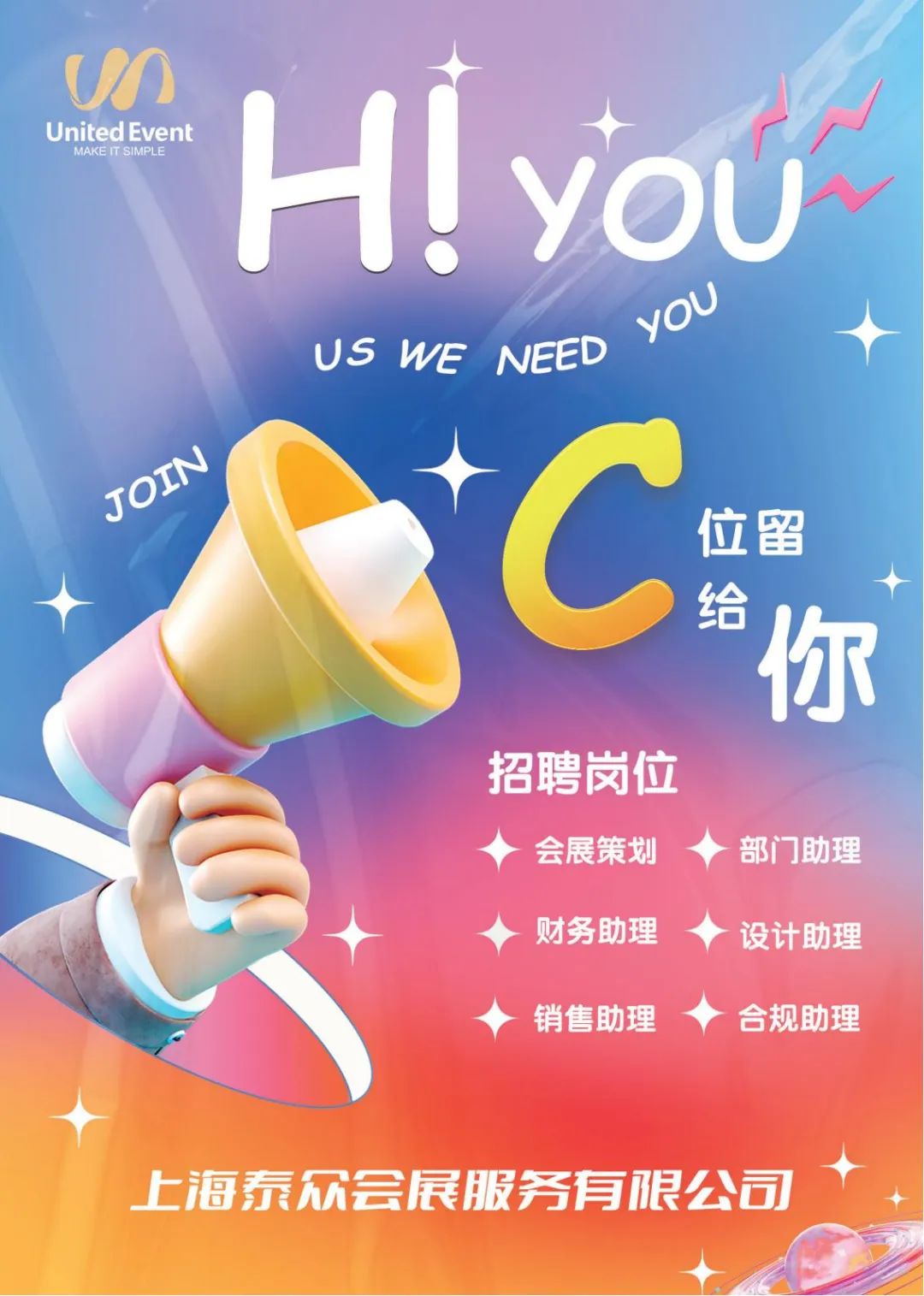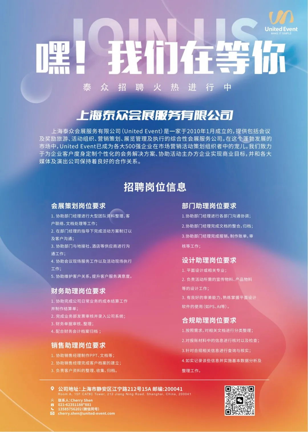 【上海招聘】上海泰众会展招聘会展策划、设计助理、财务助理、销售助理等岗位