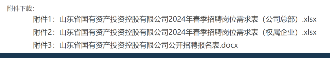 山东省国有资产投资控股有限公司是由山东省人民政府出资设立的有限责任公司,注册资本45亿元。2015年改制成为山东省唯一一家省级国有资本运营公司,肩负着开展国有资本运营管理、推动国有资本保值增值、服务全省重大发展战略的重要使命。公司积极践行“资本助力实体经济、运营服务山东战略”的企业使命,做强做优战略新兴产业、金融投资、资产管理三大主营业务,主要经营领域涉及资本运营、资产管理运营、信息技术、高端装备、生物医药、远洋渔业、银行保险等多个行业,培育发展了浪潮集团、超越科技、华特集团、中鲁远洋等一批优势企业,控股浪潮信息、华特达因等5家上市公司。截至2023年底,公司合并资产总额2505亿元,实现营业收入1383亿元,利润总额55亿元。2020年—2023年连续4年被评为“山东社会责任企业”,连续9年主体信用评级为AAA级,2023年获评上交所“公司债券优秀发行人”和“产业债券优秀发行人”。本次招聘涉及山东省国有资产投资控股有限公司总部及所属20户企业的生产、科研、管理等53个岗位,共计招聘109人。其中,校园招聘77人,社会招聘32人。具体用人单位、任职条件、岗位职责等详见附件。(一)自觉坚持以习近平新时代中国特色社会主义思想为指导,牢固树立“四个意识”、坚定“四个自信”、坚决做到“两个维护”,坚决执行公司的决策部署,严格遵守党的政治纪律和政治规矩,在思想上政治上行动上同以习近平同志为核心的党中央保持高度一致。(二)具有良好的职业操守和个人品行,严格遵守党章党规党纪和有关法律法规规章,公私分明,坚持原则,勤勉尽责,严守底线,廉洁从业。(三)身心健康,具有良好的心理素质和能够正常履职的身体素质。(四)应聘者为国(境)内高校毕业生的,入职时必须取得教育部承认的学历、学位证书,海外留学归国人员还应取得教育部留学服务中心出具的学历学位认证证明。(五)具有以下情形之一的,不得报考:受处分期间的人员或处于处分影响期的人员;因犯罪受过刑事处罚的人员;被开除中国共产党党籍的人员;被开除公职的人员;被依法列为失信联合惩戒对象的人员;因个人原因造成国有资产重大经济损失或恶劣影响的人员;正在接受审计、纪律审查,或涉嫌犯罪、司法程序尚未终结的人员;报考后构成回避关系的人员;法律法规规定不得聘用的其他情形的人员。本次招聘仅接受网上报名,报名邮箱和联系方式详见附件。报名时间自公告发布之日起至2024年4月30日24点止。应聘者需填写《山东省国有资产投资控股有限公司公开招聘报名表》(附件3),将可编辑版与本人签字扫描版报名表、相关资料扫描件一同打包,发送到报名邮箱(请在标题中注明“姓名-应聘单位-应聘职位”,标注不清晰者视为无效报名),参加面试时需携带相关资料原件。提供的相关资料包括:本人有效身份证件、学历证、学位证、职(执)业资格或专业技术资格证明书等扫描件,学信网在线验证报告(海外取得学历学位者须提供教育部留学服务中心出具的《国(境)外学历学位认证书》)。尚未取得学历学位的国(境)内2024届高校毕业生需提供学信网学籍在线验证报告。报名结束后,用人单位会根据招聘岗位资格条件和报名者具体情况,对报名人员进行初步筛选和履历评价,确定入围考试人员名单。用人单位对通过资格审核的人员进行笔试和面试,具体时间、地点另行通知。综合考察主要包括背景调查、档案审核、组织考察、体检等,对通过考试的应聘人员资格、素质、能力、业绩和廉洁从业等情况进行全面的考察和复核。用人单位依法与聘用人员签订劳动合同,按规定办理相关手续,落实好相关待遇。(一)资格审查贯穿招聘全过程。应聘者应对提交材料的真实性负责。凡弄虚作假者,一经查实,即取消考试资格或录用资格;入职后一旦发现,解除劳动合同。公司对应聘者所提供的信息保密,报名资料恕不退还。(二)每位应聘者限报一个职位,多报者取消报名资格。(三)笔试、面试及录取通知将通过电话或电子邮件、短信等方式告知。未入围或录取者,不再另行通知。(四)公司有权根据报名情况等因素,调整、取消或终止个别岗位的招聘工作,并对本次招聘享有最终解释权。(五)除网上报名外,公司不接受其他任何形式的报名。本次招聘不收取任何费用,不授权任何机构进行培训。