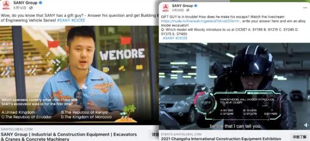 三一集团在CICEE展会期间,尝试了一种新的策略:以视频为主进行互动。他们拍摄了一系列制作精良、风趣幽默的短视频,以此来吸引粉丝的注意力并鼓励他们参与互动。在这些视频中,三一集团采用了真人出镜的方式,将视频中的主人公包装成“gift guy”,并且告知粉丝,只要“gift guy”出现,就会有福利活动。