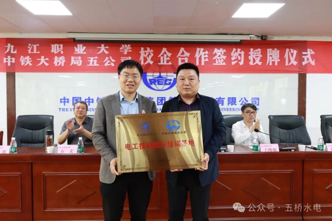 仪式上,水电中心经理张星熠与九江职业大学签订校企合作协议,并授予九江职业大学电工技能提升培训基地牌匾。希望以此次活动为契机,进一步加强校企合作,深化合作内容,拓展合作领域,共同探索人才培养的新模式,实现教育与产业的合作双赢。