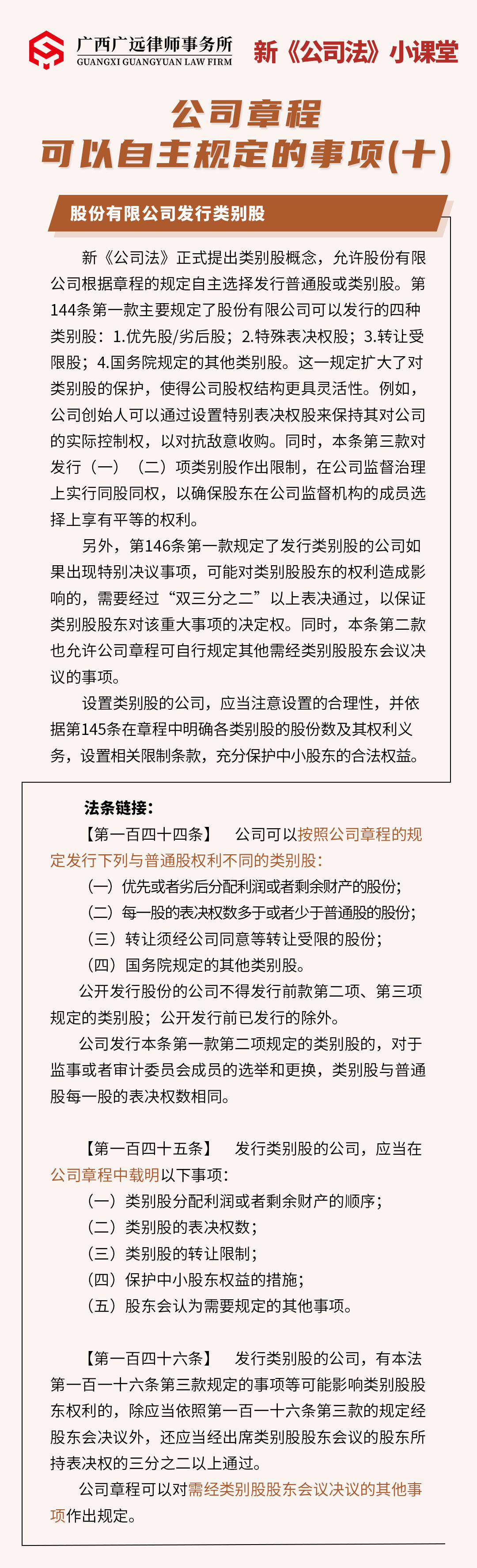 公司章程可以自主规定的事项(十)——股份有限公司发行类别股