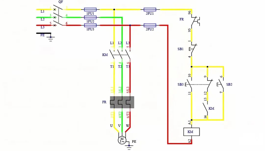 2.了解常用的电器元件与选型。电器元件选型的主要依据是工作电压、电流,工作环境,工作要求等。常用电器元件分断路器类QS、变压器类T、开关按钮类S、继电器类等。