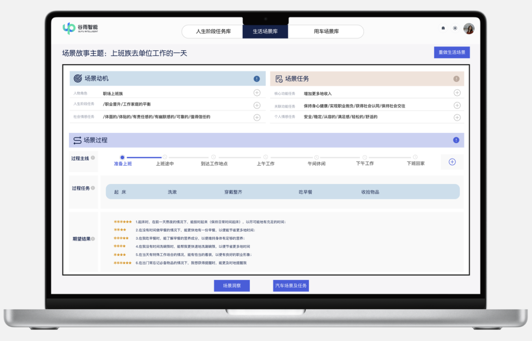 因此,谷雨智能场景库产品中,我们定义的场景库更加注重消费者用车来解决的问题的核心预期,并从功能预期、情感预期和社会价值预期三个层面进行深入挖掘。
