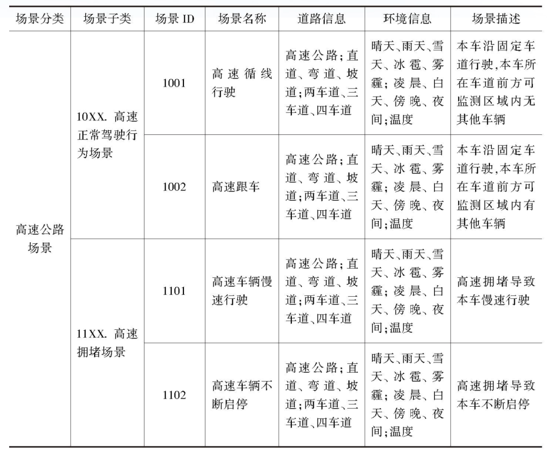 「汽车功能场景库建设部分功能场景示例」