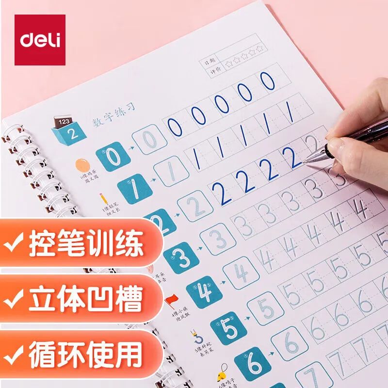 得力4本装学龄儿童练字帖,专为初学者设计,凹版控笔字帖帮助幼儿园小朋友掌握正确书写姿势,锻炼控笔能力。套装内包含多种练习内容,让孩子在愉快的练习中逐步提升书写水平。