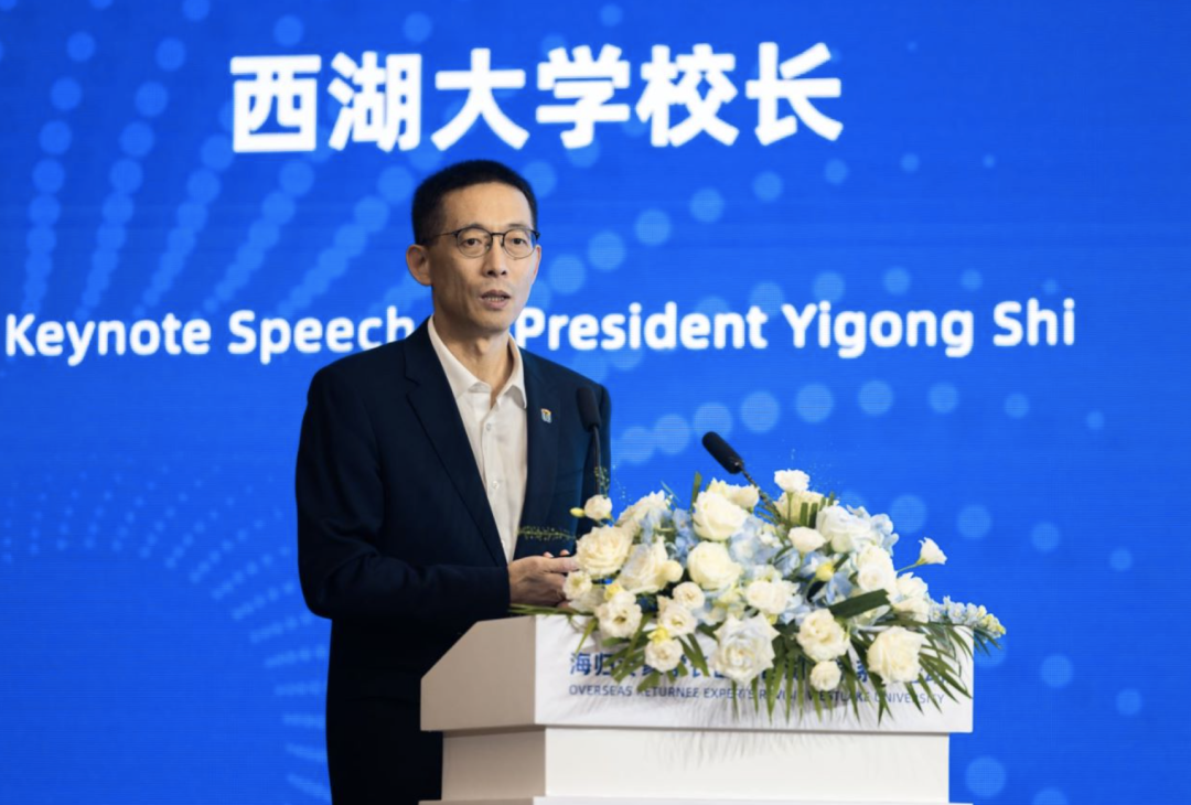 会上,举行了部分海归专家学长与西湖大学相关领域负责人合作结对仪式;西湖大学校长、西湖大学未来产业研究中心主任施一公为现场的海归专家颁发了荣誉校友证书,欢迎大家“常回来看看”,期待一起“携手向未来”。