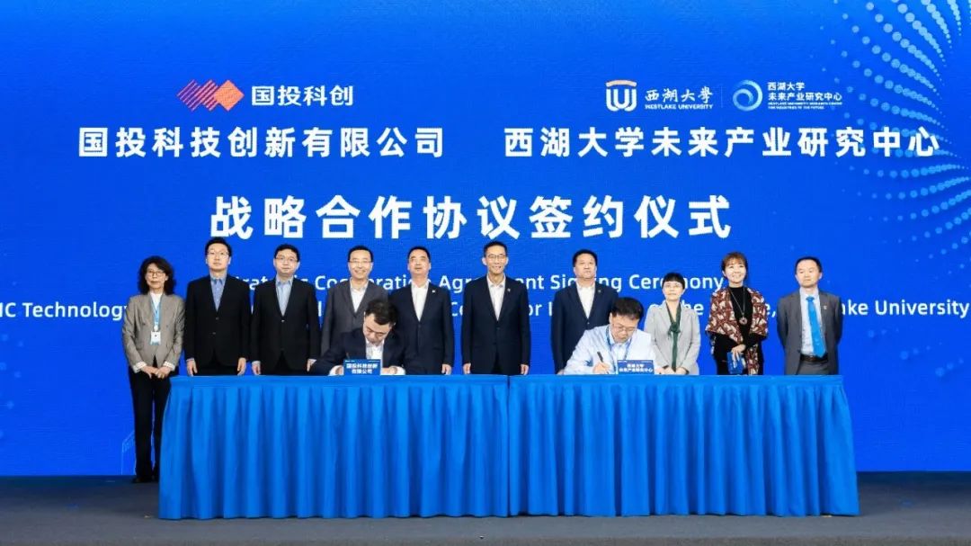 大会现场,国投科创与西湖大学未来产业研究中心签订战略合作协议。在海归专家学长的牵线搭桥及城西科创大走廊、西湖区的鼎力支持下,双方将聚焦人才、项目、资金等创新要素,共同推进基础研究和前沿技术突破,为加快发展新质生产力、超前布局未来产业蓄势赋能。