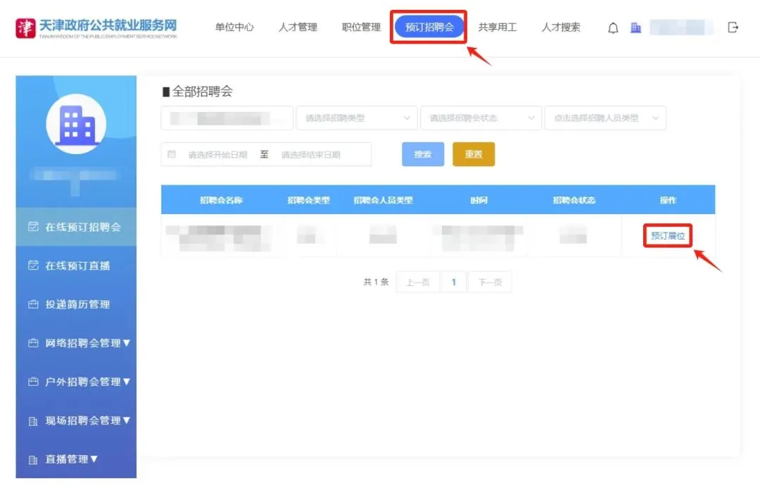第三步:预定招聘会展位
