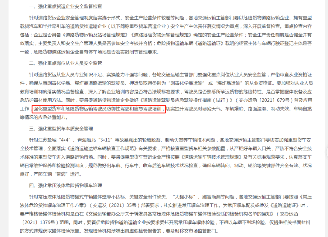 交通运输部办公厅下发关于《关于强化道路货物运输重点领域安全管理工作的通知》通知中提出要强化重型货车和危险货物运输驾驶员防御性驾驶和应急驾驶培训。物流运输企业车辆在途行驶过程中存在的事故和风险不仅会产生经济损失,更会对企业和社会造成负面影响,可能引发较为严重甚至是灾难性的后果。因此如何有效控制和管理道路运输过程的风险,防范事故发生和责任倒查,已成为政府、企业乃至驾驶员所共同面临的重要而又紧迫的问题。驾驶员是交通运输安全的重要决定因素。防御性驾驶从改变驾驶员的意识出发,提升学员安全意识,找出解决方案,最终降低暴露于道路风险的概率,以实现安全驾驶。为增强驾驶员提前预防并减少驾驶风险,切实提升驾驶员对恶劣天气、车辆爆胎、路面湿滑、制动失效、车辆自燃等情况的应急处置能力,培育企业内部教练员,中国交通运输协会培训中心决定举办道路运输企业防御性安全驾驶技术企业内训师培训班,具体安排如下: