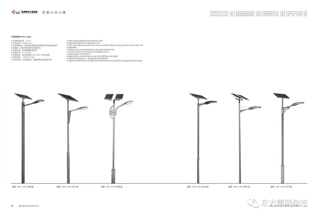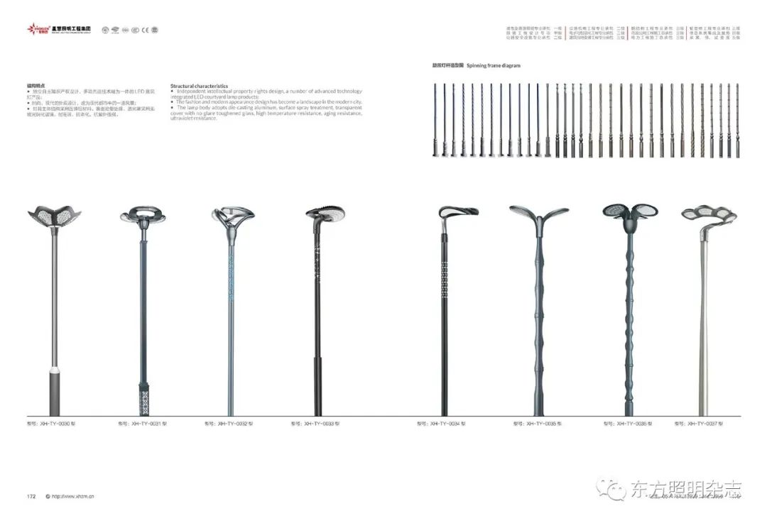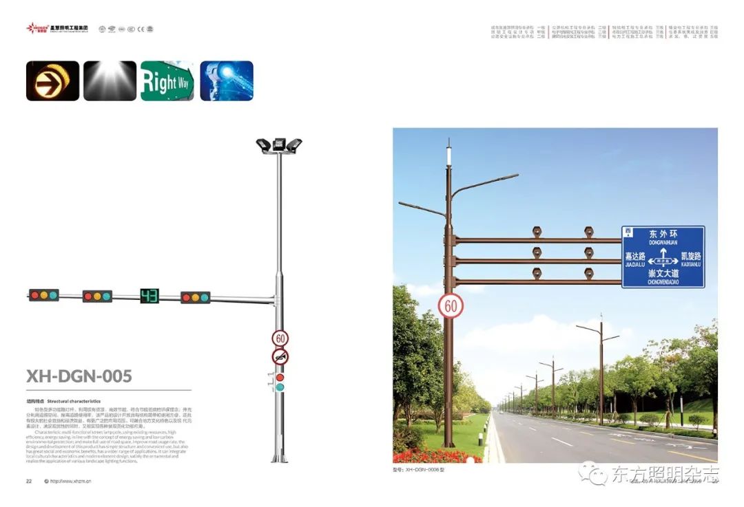 集团公司的产品主要包括:智慧路灯、道路灯、太阳能路灯、高杆灯、LED灯具、电池板组件、单臂灯、双臂灯、组合灯、交通信号灯、电力杆、指示牌、龙门架、景观灯、庭院灯、草坪灯等。公司产品顺利通过国际权威检测机构SGS检测,产品出口美国、苏丹、菲律宾、老挝、越南、坦桑尼亚、阿联酋、以色列等国家。
