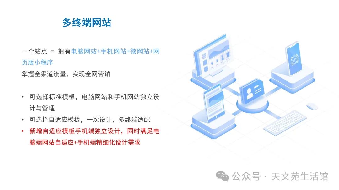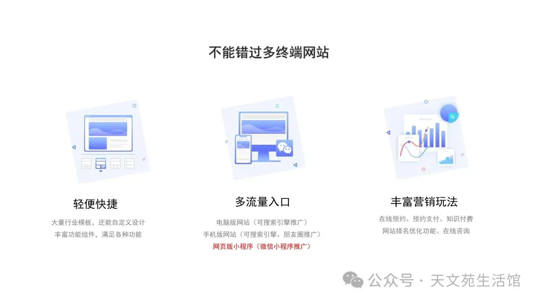 “天文苑网络服务平台”提供的网站服务同时支持电脑和手机两端,无论客户是在办公室使用电脑办公,还是在外出时使用手机,都能轻松访问到你的网站。这一特点极大地拓宽了用户的使用场景,满足了不同用户的需求。更重要的是,借助天文苑网络服务平台,提升和打响自我品牌变得触手可及。我们提供全面的品牌展示和推广服务,旨在帮助你轻松提升品牌知名度和影响力,使你的品牌在市场上脱颖而出,实现品牌价值的最大化。无论你是个人还是企业,只要你有塑造和推广品牌的梦想,天文苑都将成为你实现这一梦想的有力平台,可以根据优势和不足为你设计属于自己的商业操作。