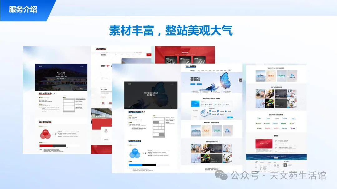 我们为你提供了多款独特且精美的网站模板,你可以根据个人或企业的需求与喜好,轻松一键切换使用,实现网站的快速定制与个性化展示。如果你也梦想拥有一个属于自己的专业网站,无论是用于个人展示、品牌推广还是产品销售,都可以直接联系“天文苑”。我们的团队将竭诚为你提供全方位的网站建设服务,从域名注册、主机托管到网站设计与维护,一站式满足你的所有需求。与“天文苑”合作,让你的网站成为展示个人魅力或企业实力的最佳窗口。