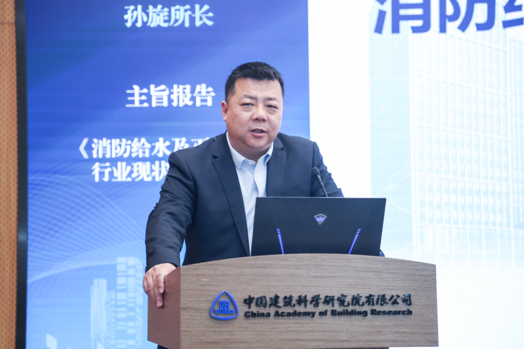 住房和城乡建设部科学技术委员会建设工程消防技术专委会副主任委员、中国建筑学会建筑防火综合技术分会理事长、中国建筑科学研究院建筑防火研究所所长孙旋作题为《消防给水及灭火系统行业现状及未来》的主旨报告,分析了消防给水及灭火系统的行业背景,提出了在行业调研中发现的问题,并从标准体系、设计、施工、产品、运维等多个角度提出了对策建议,一是建立健全消防标准体系,需要产研结合与实验验证;二是水力计算精细化,研发人工智能辅助审图系统;三是建立全过程项目技术质量管理,完善工程现场验收技术;四是建立灭火系统产品数据平台,构建消防产品全生命周期品质评定标准;五是优化智慧消防管理技术,提升量化检测评估技术。最后,从消防给水及灭火系统的创新技术方面提出了一系列宝贵建议,引发行业思考,助力高质量发展。