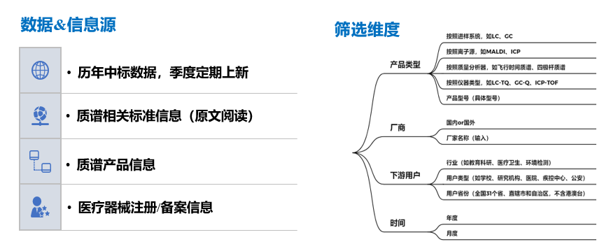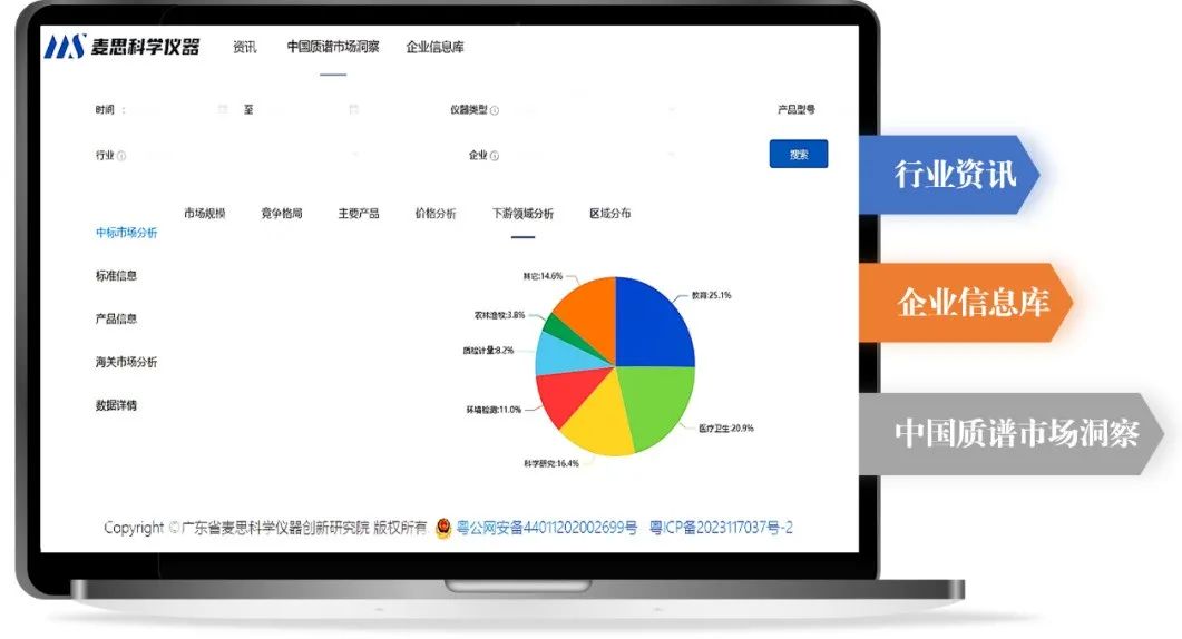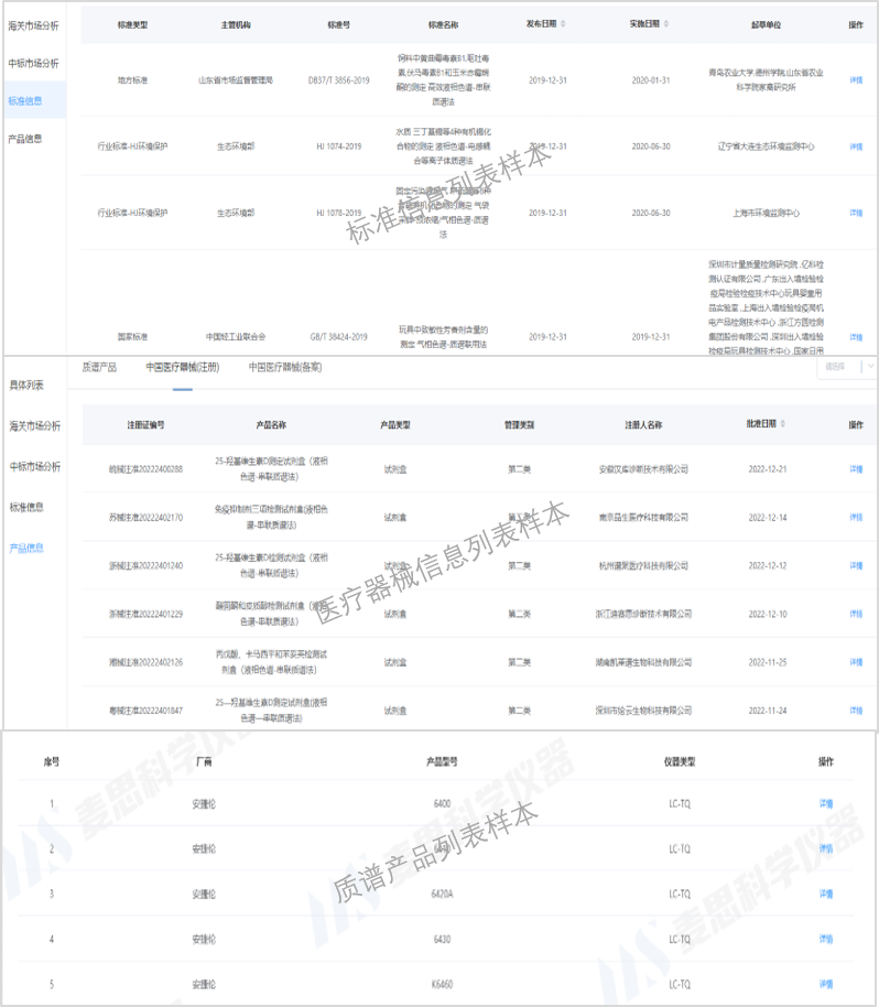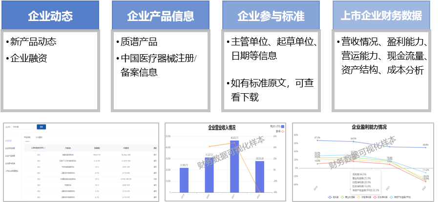 企业的质谱产品、参与标准、融资情况、上市公司财务数据等信息应有尽有。