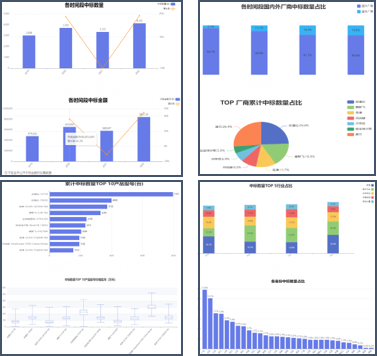 平台通过产品类型、厂商、下游用户等多角度组合搜索,快速获取精准数据。可一键展示中标数据、标准信息、医疗器械信息、产品信息等。