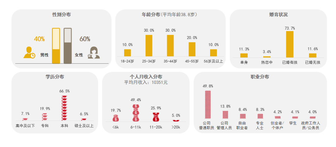 女性、已婚有孩的 85 后人群是当前功能食品消费的主力军,这类人群家庭稳定,对健康需求较高。他们的教育背景多为本科,职业以公司普通员工居多,收入在 6000-11000 元之间,平均月收入为 10351 元。消费者的收入能够支撑其持续购买功能食品,但考虑到目前功能食品的价格相对较高,且大多数受众为公司普通职员,性价比依然是企业打动消费者的重要因素。