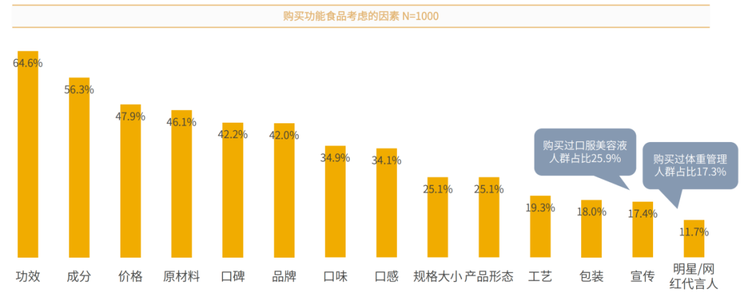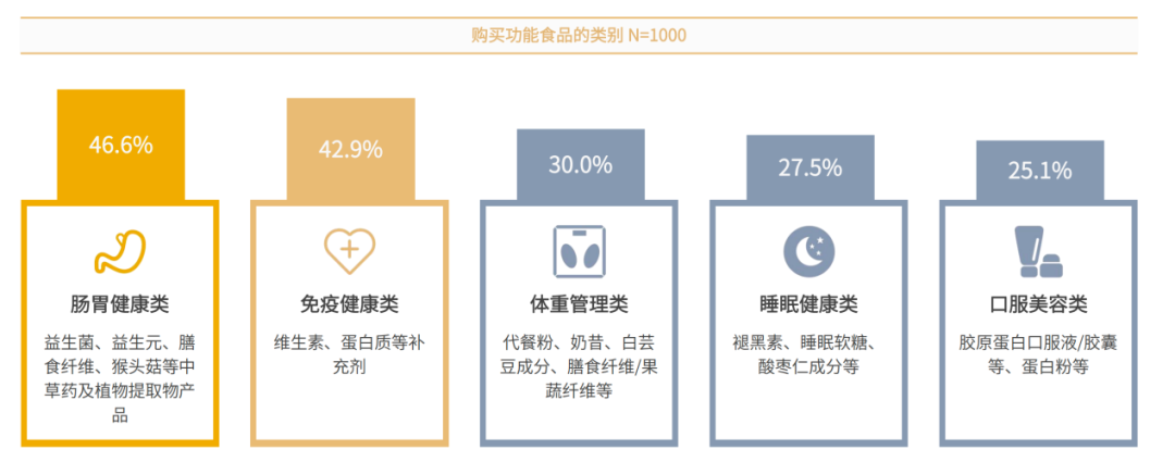 免疫健康、体重管理和口服美容均属于消费者购买的前五类别。