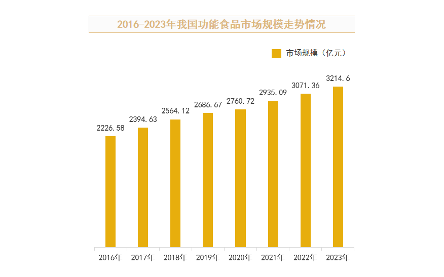预计2023年我国功能食品市场规模将达到3214.60亿元左右