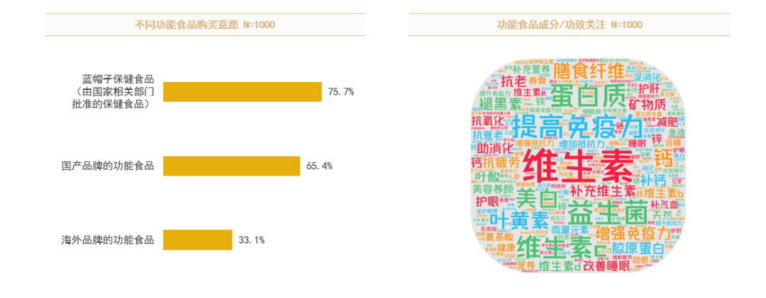 在国货当道的时代,消费者在选择功能食品类别时,也更加青睐蓝帽子保健食品及国产功能食品。其中,