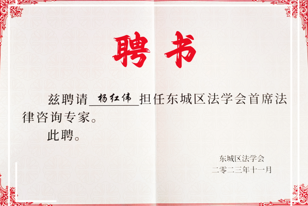 【会员风采】商会首席法律顾问格韬杨红伟主任受聘担任北京市东城区法学会首席法律咨询专家