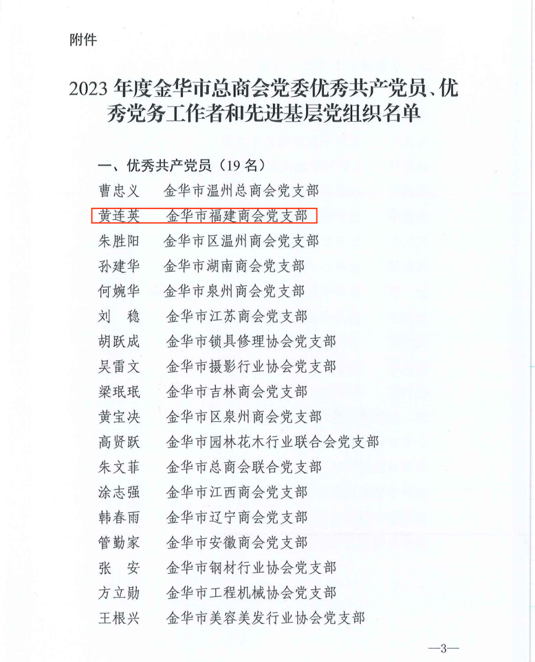 金华市福建商会党支部黄连英同志荣获2023年度“优秀共产党员”称号!