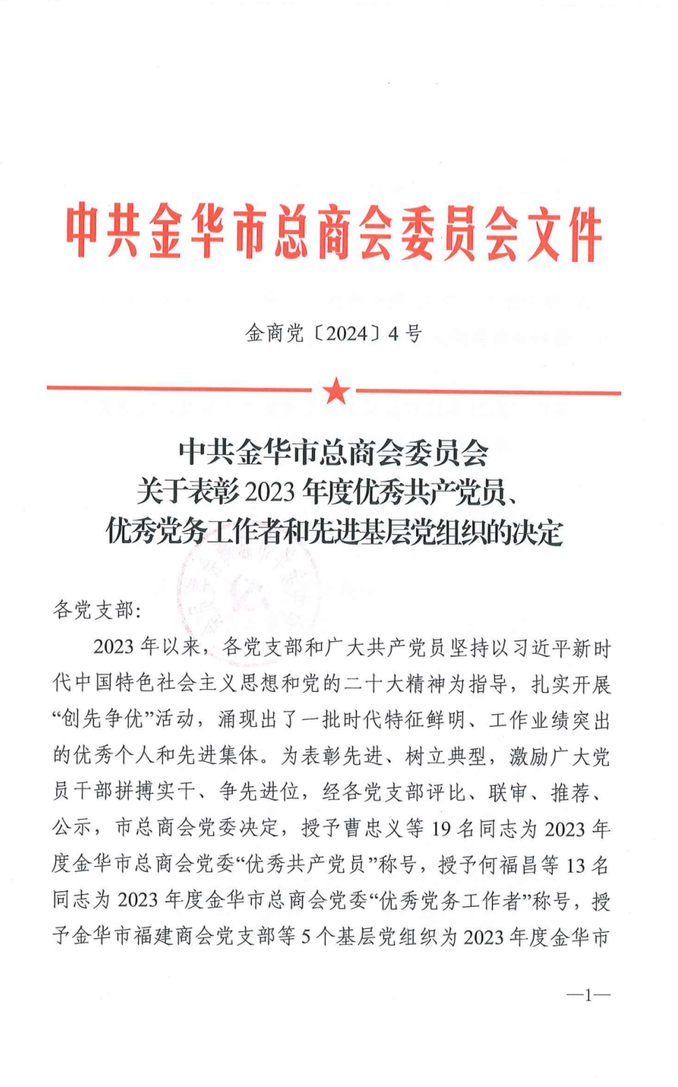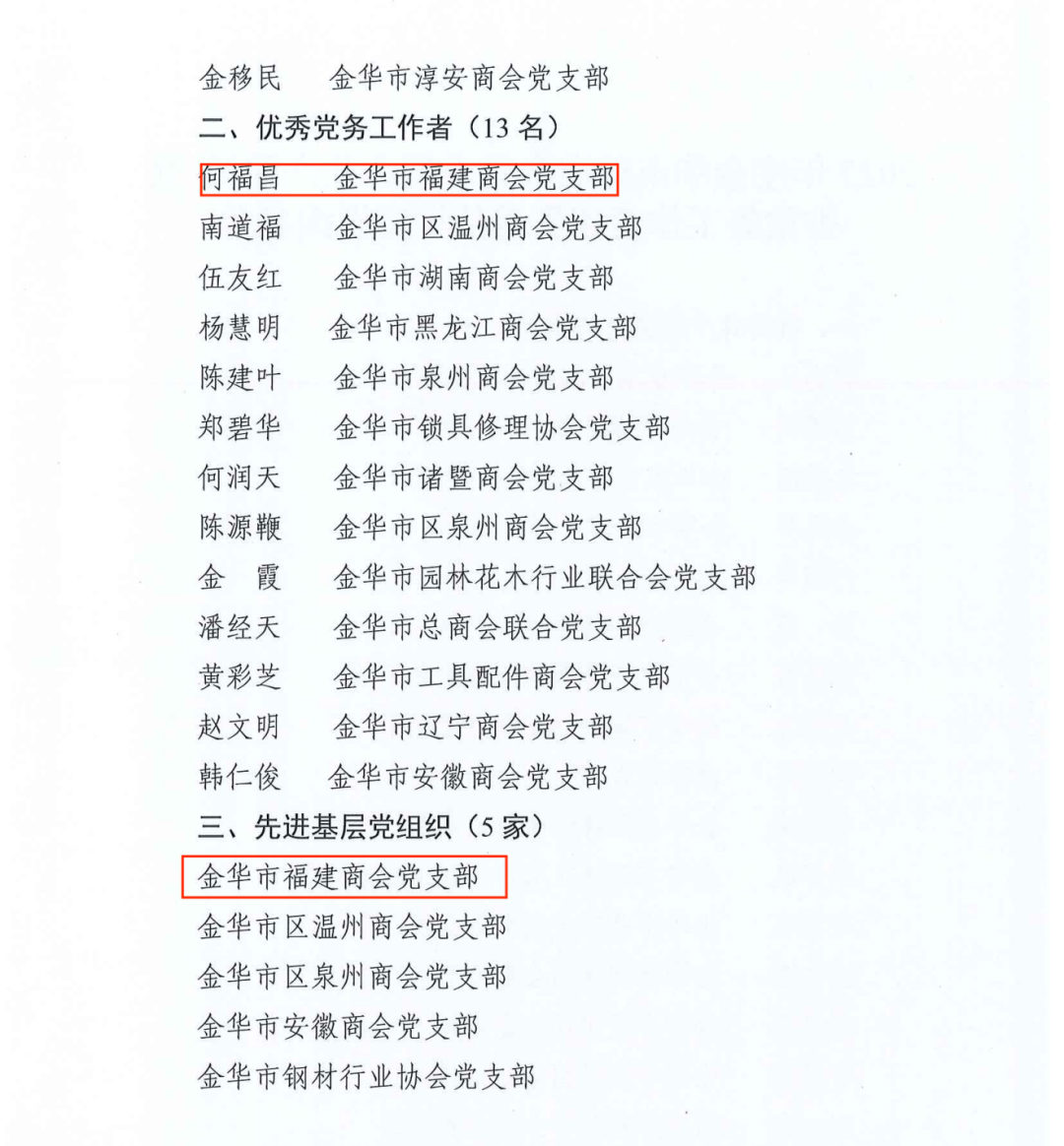 金华市福建商会党支部获评2023年度“先进基层党组织”称号!