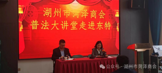阳春时节,万木葱茏。4月13日,湖州市菏泽商会普法座谈会在德清县浙江东特金属科技有限公司举行。湖州市菏泽商会会长卞红菊带大家学习了今年4月2日举行的市工商联八届三次会议精神;商会执行会长兼秘书长曹长青公布秘书处增补人员名单;商会执行会长蔡加宝就围绕如何搭建活动载体,做了精彩发言;座谈会由商会执行会长孔维君主持。
