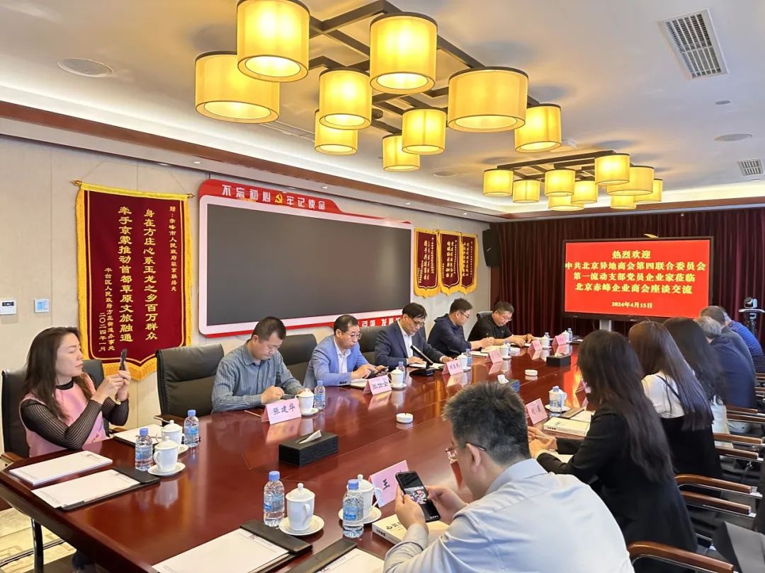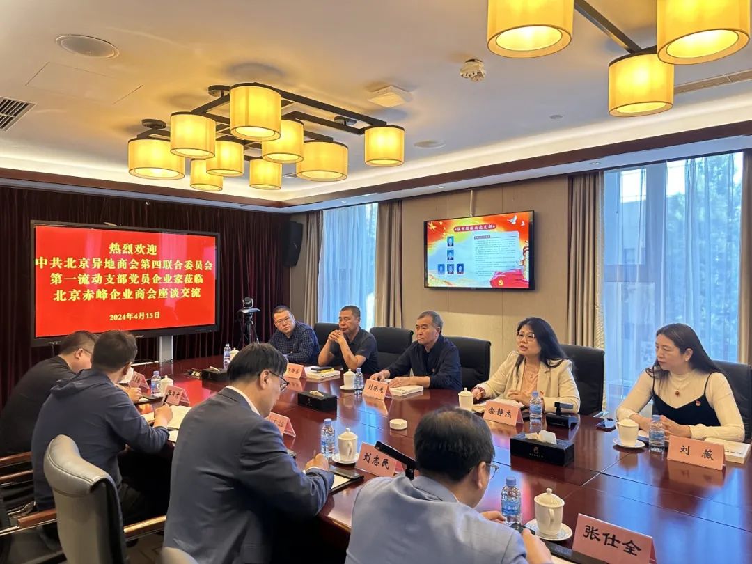 4月15日,中共北京市异地商会第四联合委员会第一流动支部党员企业家交流座谈会在北京赤峰企业商会召开。