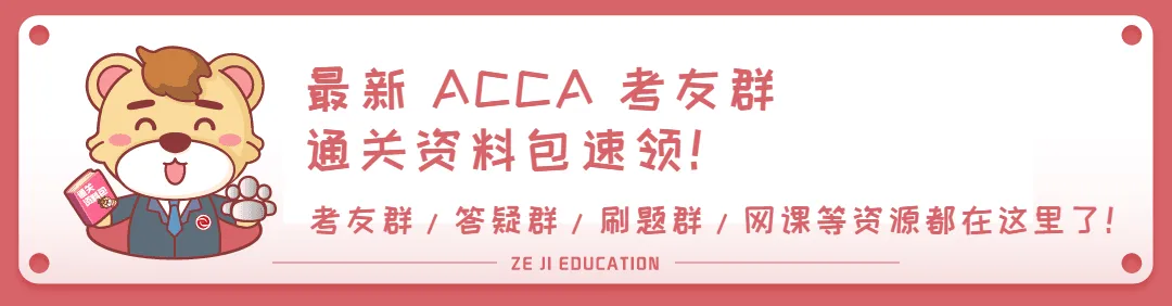 ▎文章来源:由泽稷教育新媒体中心泽稷ACCA考友论坛(ID:zejiacca)整理发布,封面图来源:稿定设计。编辑:A宝,泽被天下,稷往开来,若需引用转载或有版权问题,请联系A宝微信(ID:accaer007),泽稷教育—ACCA双白金级认可培训资质(总部、网校)