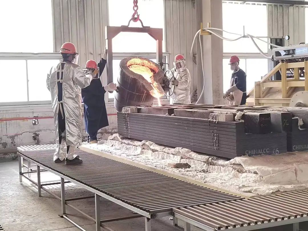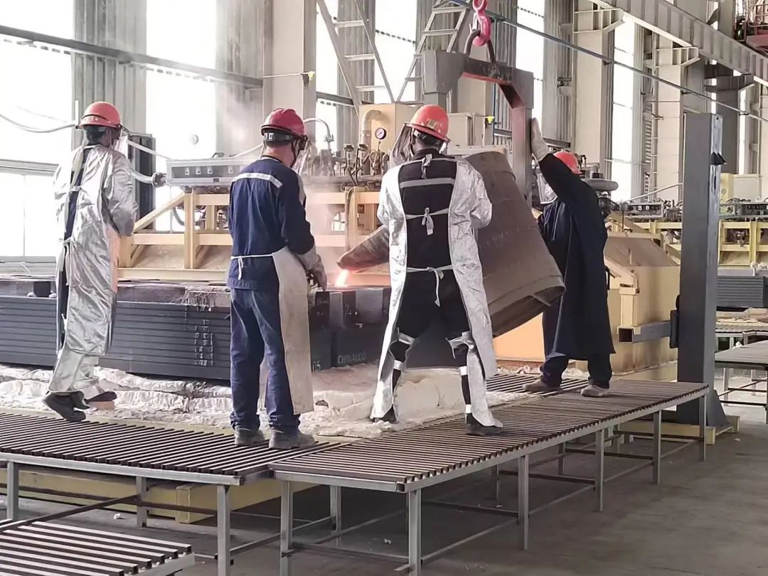 2024年4月10日,三分公司承接的山西中铝华润有限公司阴极炭块磷生铁浇铸项目迎来了首个重要里程碑——首炉生铁阴极炭块成功浇铸!这不仅标志着项目取得了阶段性的重大胜利,更为后续工作的顺利推进奠定了坚实的基础!