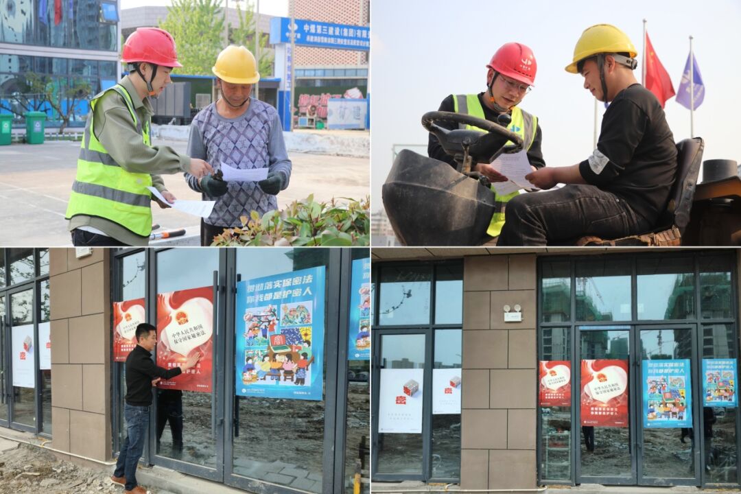 泗县片区项目部党支部组织党员安全监督岗成员和青年志愿者们深入施工现场,发放“如何保护国家安全”的宣传单,热情为施工人员和广大群众宣讲树立国家安全和保密意识的重要性,并在人员集中的醒目位置张贴了宣传海报,营造了“国家安全,人人有责”的浓厚宣传教育氛围。