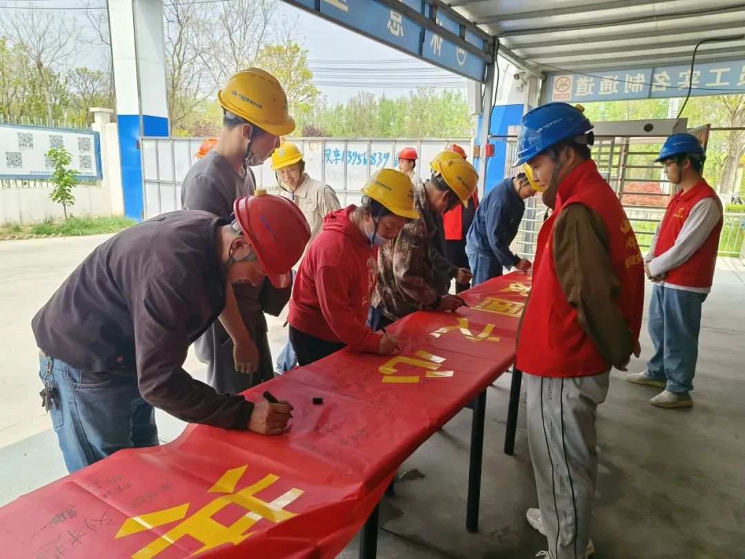 半导体项目党支部组织职工及班组人员深入学习贯彻习近平总书记关于总体国家安全观的重要论述,宣传普及国家安全法律法规。精心制作国家安全口袋书,青锋志愿者们为现场作业人员发放口袋书并解读国家安全的相关知识。组织项目和班组管理人员、作业工人在活动条幅上进行签字,积极营造维护国家安全的浓厚氛围。