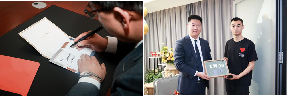 陕西佳豪店EM90尊享交车仪式感动瞬间:为小朋友准备专属蛋糕和粉色气球、专属的钥匙礼盒、随车拖鞋、毛毯、衣物包、羊毛脚垫等;店面努力提升客户满意度,在家庭用车客户交车仪式偏向温馨、对公司购车客户我们的交车仪式偏向商务,保证沃尔沃应有的品牌调性同时,更融入宾至如归的贴心。