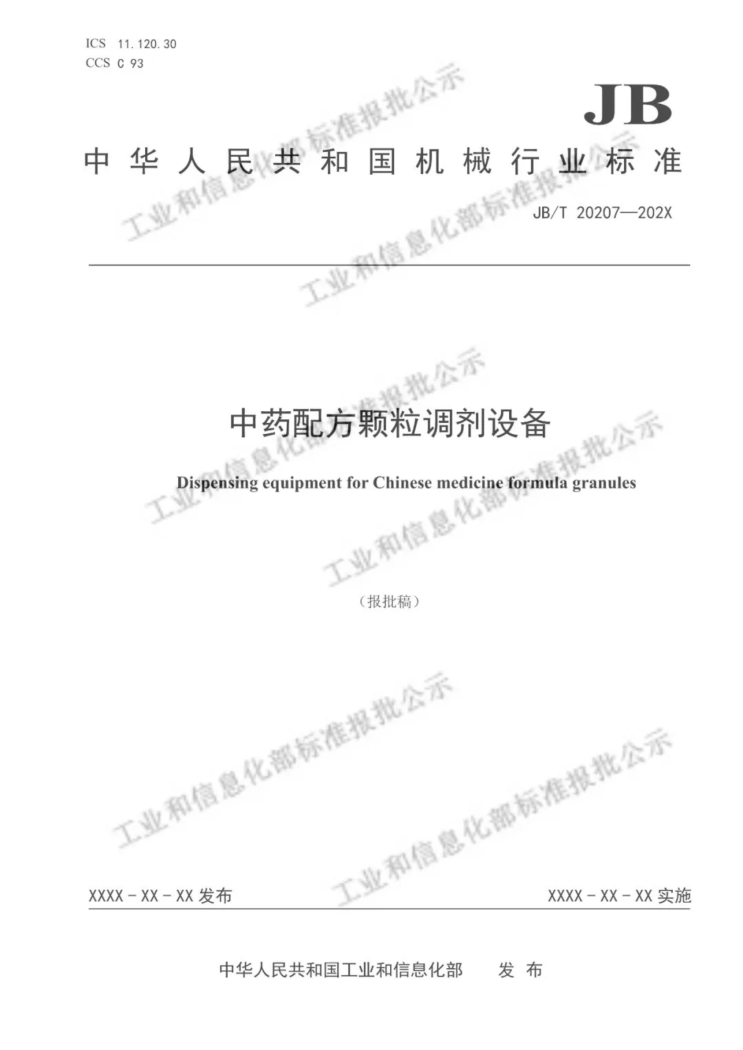 工信部:中药配方颗粒调剂设备行业标准公示