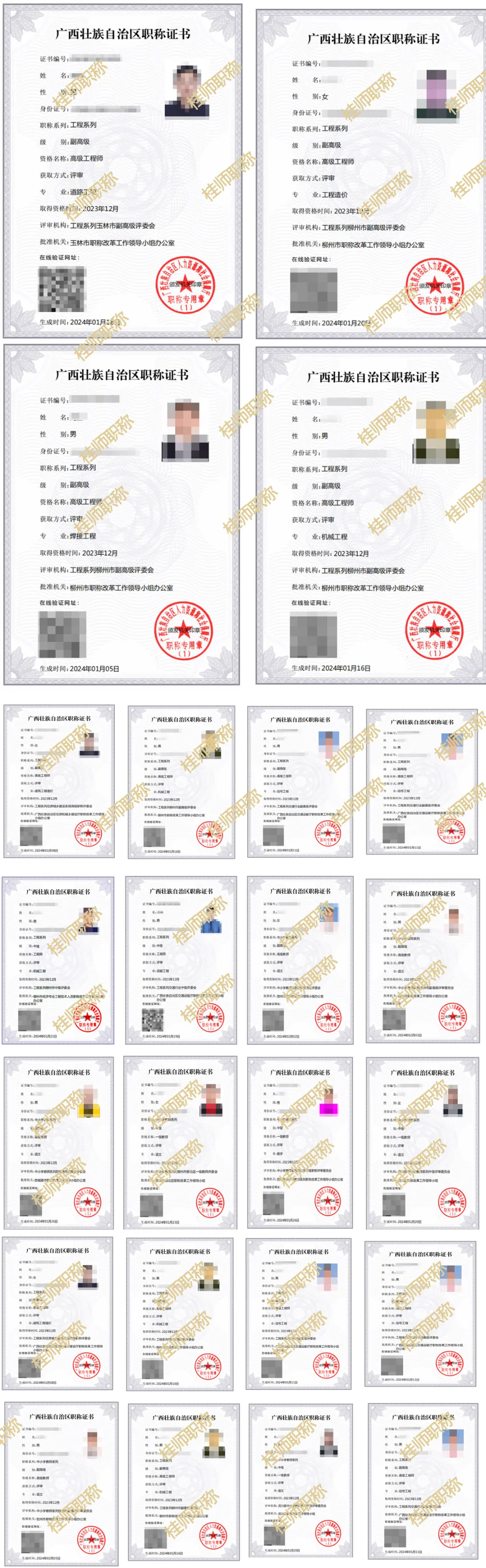 桂师职称10多年来专注广西各系列职称辅导申报,往年辅导副高通过率都在70%左右,中级整体通过率接近100%。如果希望帮检查去年没通过原因,或者打算今年申报需要图片处理、获奖分类、证明指导填写、总结润色、系统指导填写的可以加下方职称老师微信: