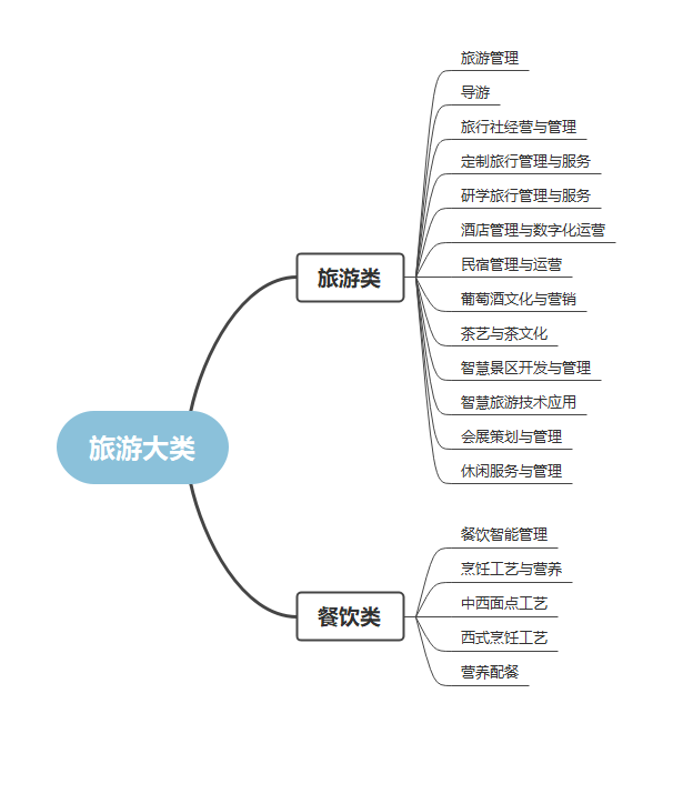 “旅游类”包括了旅游类、餐饮类2个专业类别,旅游管理、导游、餐饮智能管理、烹饪工艺与营养等18个专业。(根据教育部发布的《职业教育专业简介(2022年修订)》)