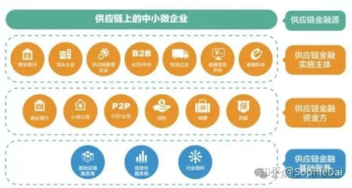 目前供应链金融的实施主体不再只仅仅是传统的商业银行,还包括产业中的龙头企业、供应链管理企业、B2B平台、物流企业、金融信息平台、金融科技公司等等