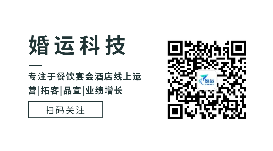 婚礼堂宴会酒店市场竞争激烈,线上营销已经成为每个婚礼堂宴会酒店企业不可或缺的一部分,如果您也是婚礼堂宴会酒店企业,想为酒店做线上营销获客,但不会做、没精力做、没时间做,不妨考虑我们婚运科技,我们是一家专注于婚礼堂宴会酒店线上运营的科技公司,提供各平台全托管整合式服务,可以帮助婚礼堂宴会酒店快速提高市场影响力和签单营收。