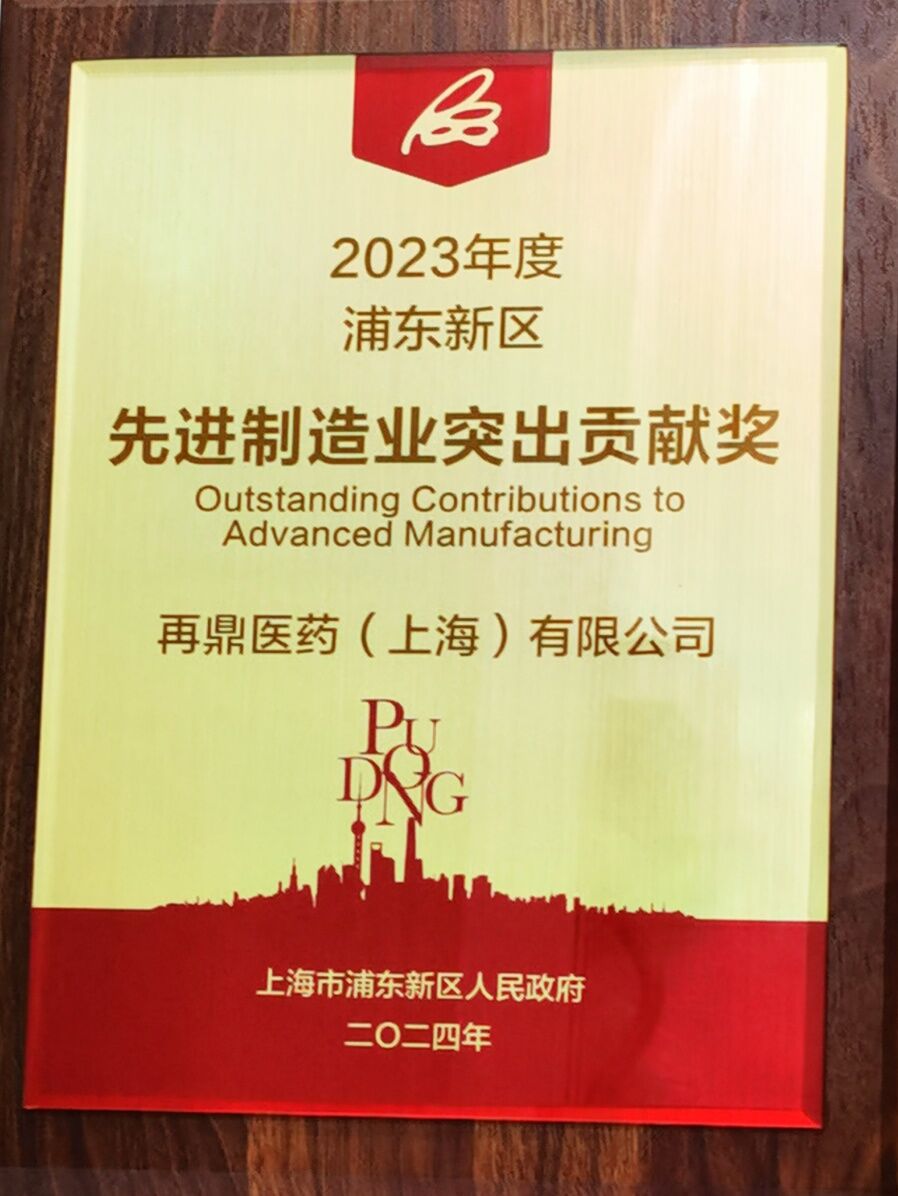 再鼎医药荣获“2023年度浦东新区先进制造业突出贡献奖”