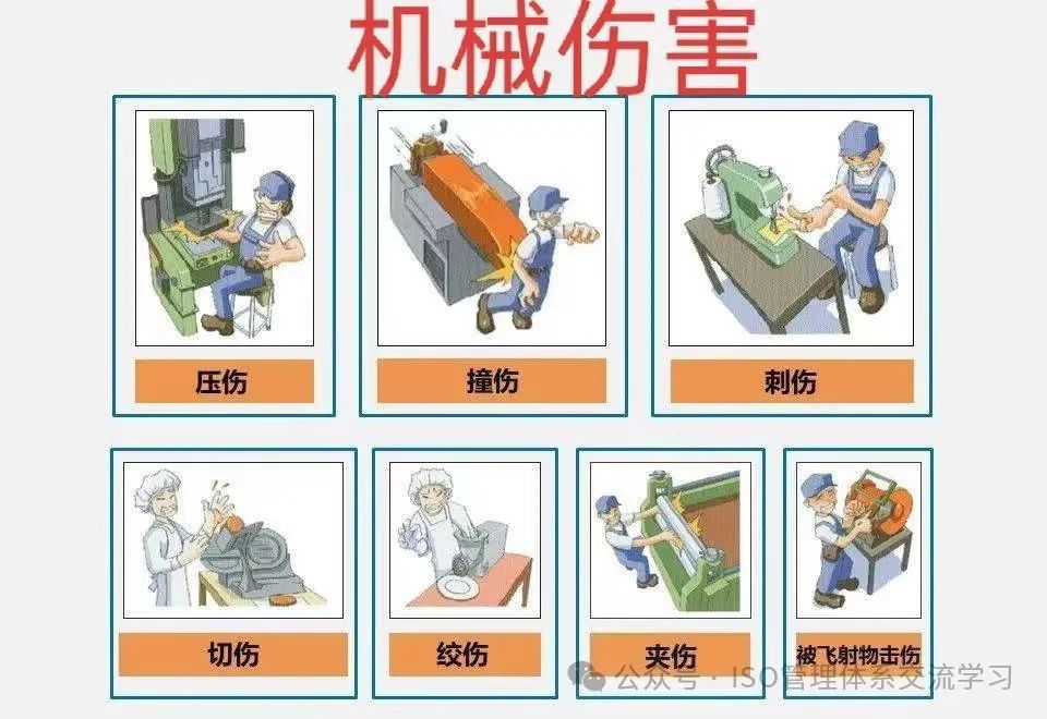 本章指行驶中的除起重设备、牵引车辆外的车辆造成的伤害;15.机械伤害,指机械设备运动(静止)部件、工具、加工件直接与人体接触引起的夹击、碰撞、剪切、卷入、绞、碾、割、刺等伤害,不包括车辆、起重机械引起的机械伤害。